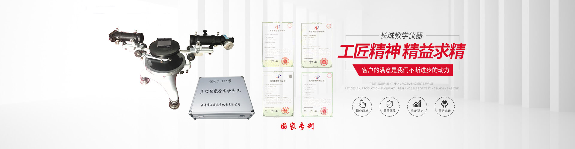 我公司自主研发的声速测量仪、一种数显杨氏模量测定仪、一种高温超导体电阻转变温度测量仪、一种永磁塞曼效应实验仪、普朗克常数测定仪、超声光栅实验仪、比累对切透镜试验仪、磁光调制试验仪 (法拉第效应试验仪)、软磁材料特性实验仪、分光计实验装置已获国家zhuanli,现销量已面向全国,主要用户有:吉林大学、天津科技大学、电子科技大学、大连工业大学、塔里木大学、成都理工大学、南昌大学、赣州师范学院、重庆三峡学院、桂林航天工业学院、深圳职业学院、齐鲁医学院等学校。