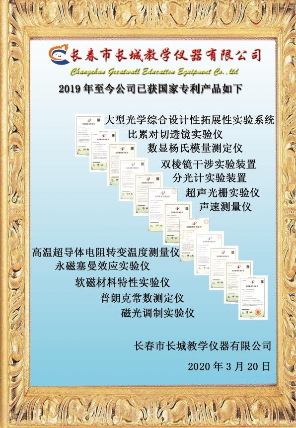 长春市长城教学仪器有限公司自2019至2020年3月申报已获得的国家专利证书共计12份!